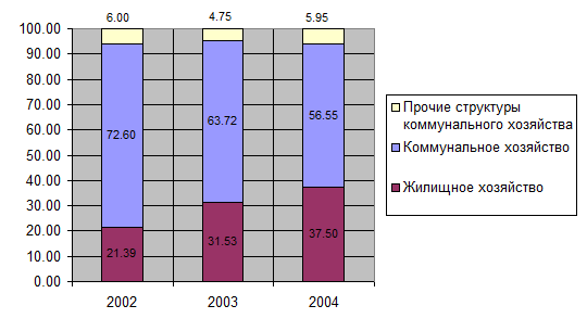 С некоторой долей условности к нерациональным расходам региональных бюджетов можно отнести значительную часть сумм средств, идущих в качестве субсидий в промышленность и сельское хозяйство, расходы на жилищно-коммунальное хозяйство, а также расходы по статье «Прочие расходы, не отнесенные к другим подразделам». Общая сумма таких расходов по Хабаровскому краю за три квартала 2004 года составила 17083 млн. руб. или 39 процентов от общей суммы бюджетных расходов.