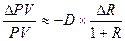 Нетрудно проверить, что дюрация и текущая стоимость потока платежей связаны зависимостью: