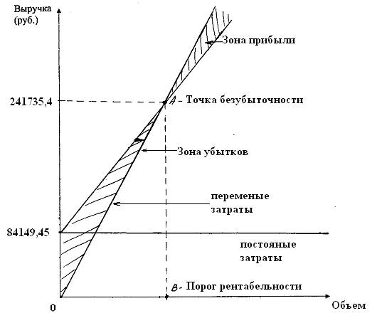 Вторым подходом к управлению затратами на предприятии является определение точки безубыточности. Точка безубыточности определяется по формуле: