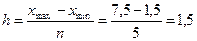 где xmax=7,5, xmin=1,5 - максимальное и минимальное значение.