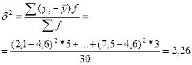 2) Для расчета характеристик интервального ряда построим вспомогательную таблицу 2.2.