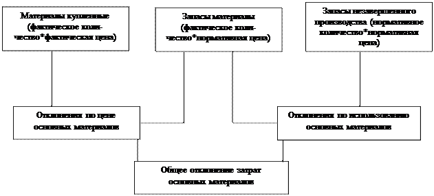 Общее отклонение затрат основных материалов определяется как разница между фактическими и нормативными затратами материалов.
