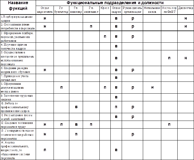1. отдел маркетинга – подает рекомендации по подбору и расстановке кадров;