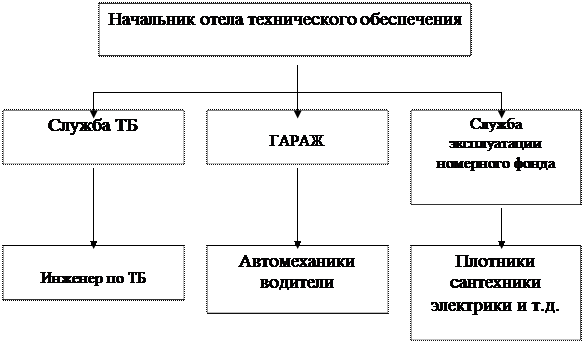 Отдел обслуживания включает в себя: офис главного администратора, стол резервирования, административно-хозяйственное подразделение, связь, обслуживающий персонал, служба безопасности, служба по маркетингу и сбыту, ночной аудитор