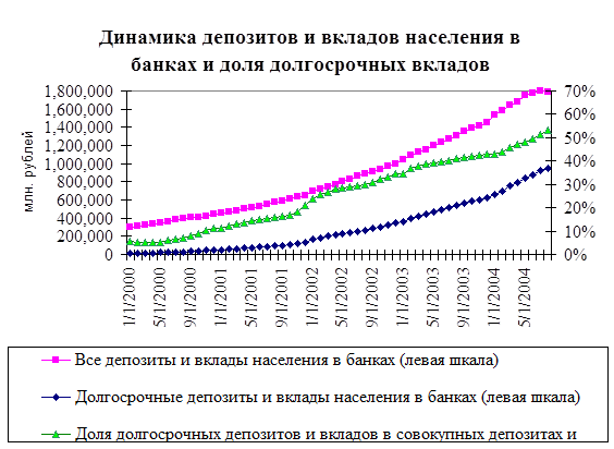 В течение прошедшего четырехлетнего периода финансовый рынок страны, представленный банками, пенсионными и инвестиционными фондами, общими фондами банковского управления и страховыми фондами аккумулировал подавляющую часть быстро растущих внутренних сбережений, норма которых в России оставалась одной из самых высоких в мире и составляла 32% - 35% ВВП.