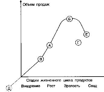 - тактическую — товары, призванные стимулировать продажи основных и находящиеся, как правило, в стадиях роста и зрелости (Г).