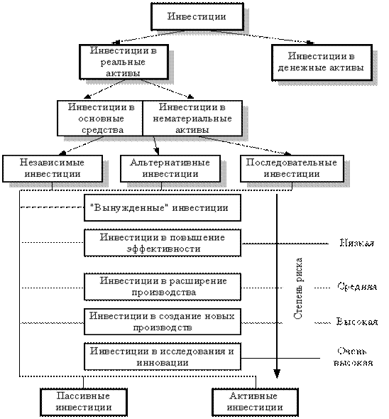 Рис. 1. Классификация инвестиций. Степень риска инвестиций.