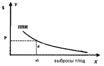 • Начертите кривую ПНИ (предельных природоохранных издержек) для конкретного предприятия, основываясь на вышеупомянутых затратах на сокращение содержания х в стоках.