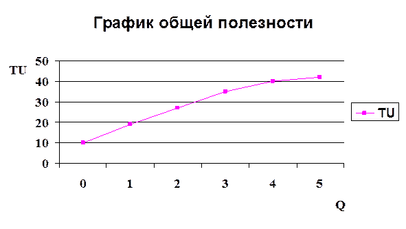 Где ΔTU – изменение общей полезности, ΔQ – изменение величины спроса. Составим таблицу для построения графика.