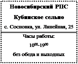 3) Режим работы магазина «Хозяйственные товары» Кубовинского сельпо Новосибирского РПС с 10 до 19 часов.