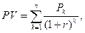 При расчете дисконтированного денежного потока, как правило, применяется постоянная ставка дисконтирования Если в ходе разработки инвестиционного проекта продолжительностью п лет ожидаются денежные потоки в размере P1, P2,… Pк, то можно рассчитать общую накопленную величину дисконтированных доходов (Present Value, PV).