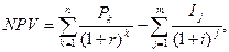 Если инвестирование осуществляется многократно в течение т периодов, то их размер также подлежит дисконтированию. Тогда формула для расчета NPV примет следующий вид: