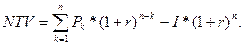 Критерий чистая терминальная стоимость (Net Terminal Value, NTV) является аналогом критерия NPV с элементами денежного потока, приведенными (наращенными) к моменту окончания проекта, формула для расчета критерия NTV имеет вид: