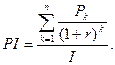 Метод расчета индекса рентабельности инвестиций[5]. Этот метод является следствием метода расчета NРV. Индекс рентабельности инвестиций (Profitability Index, PI) рассчитывается по формуле: