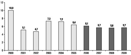 странах СНГ - 22,4% в 1998-2005 гг. при росте ВВП в 5,6%. Однако в этой группе