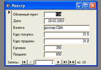 Зададим условия отбора для поля Дата – 28.02.2003, а для поля Валюта – Доллар США.