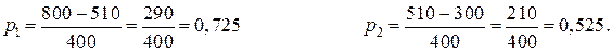 Исходя из формулы следует, что возрастании надежности P значение D увеличивается, так как увеличивается значение функции Стьюдента tp(n). Следовательно, D1> D2, т.е. доверительный интервал, соответствующий надежности P1=0,725, будет больше доверительного интервала, соответствующего надежности P2=0,525.