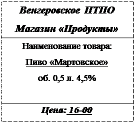 7) 8 апреля товароведом Доволенского ПТПО Иванцовым В.Г. была проведена организация торговли в магазине «Продукты». В результате проверки было выявлено следующее…