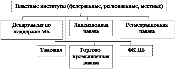 Можно выделить 5 групп институтов и соответствующих организационных структур, которые охватывают практически все рынки малого бизнеса (рис. 1.):