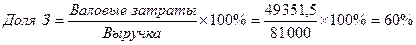 5. Для тщательного обследования необходимо узнать долю чистого дохода, долю затрат и долю валового дохода в общей выручке по формулам:
