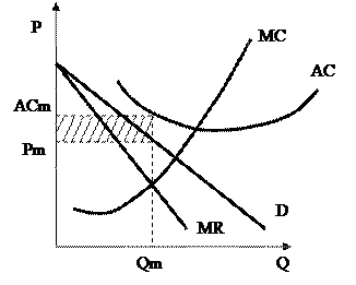 Прибыль максимальна, если при равенстве предельной выручки предельным издержкам предельная выручка с увеличением выпуска сокращается в большей степени, чем предельные издержки. В условиях максимизации прибыли монополистом предельные издержки, в отличие от модели рынка совершенной конкуренции, могут убывать. Монополист может, максимизируя прибыль, отказаться от повышения выпуска, даже если предельные и средние издержки производства снижаются. Это, как известно, служит одним из аргументов в пользу тезиса о производственной неэффективности монополии [7, c.91-92].