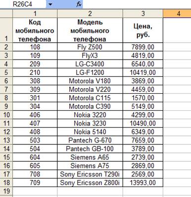 5. Заполнить таблицу Модели и цены исходными данными (рис. 4)