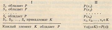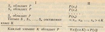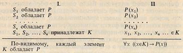 Посылками индуктивного умозаключения выступают суждения, в которых фиксируется полученная опытным путем информация об устойчивой повторяемости признака Р у ряда явлений - S1, S2, ..., Sn, принадлежащих одному и тому же классу К. Схема умозаключения в простой и символической записи имеет следующий вид: