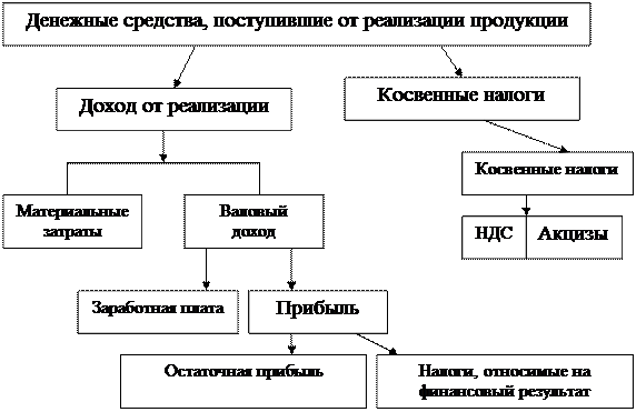 Прибыль от реализации продукции(работ, услуг) представляет собой разность между суммой выручки (валового дохода) от реализации продукции и суммой отчислений во внебюджетные фонды местных Советов депутатов для финансирования расходов на содержание ведомственного жилого фонда, налога на добавленную стоимость, акцизов и издержек производства и реализации, приходящихся на реализованную продукцию.