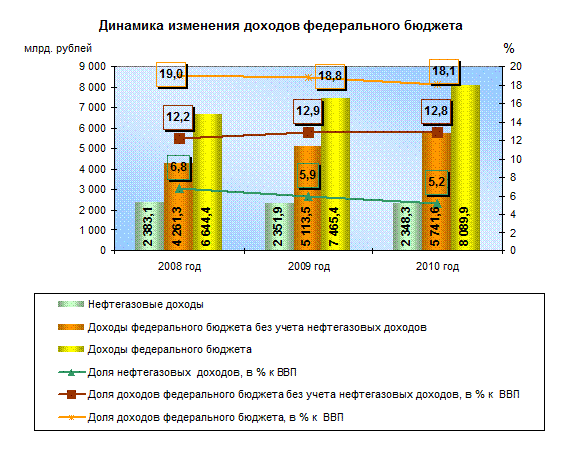 К концу 2010 года объем государственного долга составит 4 089,7 млрд. рублей, или 9,1 % ВВП, и в номинальном выражении увеличится по сравнению с 2007 годом в 1,5 раза, в том числе за счет роста внутреннего долга более, чем в 2 раза. В предыдущий бюджетный период 2003 – 2007 годов решалась диаметрально противоположная задача сокращения как общего объема государственного долга, так и относительно ВВП.