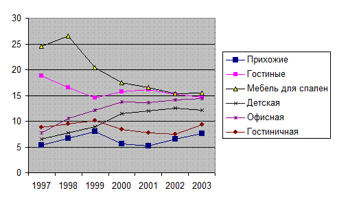 Анализ ассортимента регионального сбытового предприятия ОАО «Шатура» в Новосибирске показал, что он является достаточно широким, глубоким, устойчивым. Общая тенденция для всего ассортимента торгового предприятия – рост объемов продаж по всем товарным группам ассортимента и снижение рентабельности по ключевым товарным группам. Это объясняется усилением конкурентной борьбы на мебельном рынке в связи со значительным увеличением количества новых конкурирующих фирм-производителей и торговых посредников.