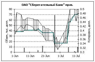 В настоящий момент котировка привилегированных акций Сбербанка равна $0.2850/0.3000 в РТС и 8.41/8.50 руб. на ММВБ.[6]