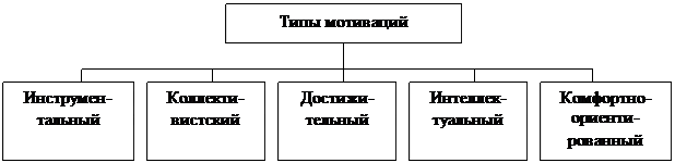 Рассмотрим основные типы мотиваций по классификации М.Н. Мельниковой и дадим им краткую характеристику (рис.1.1.)[7].