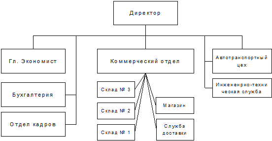 На втором уровне руководства, непосредственном подчинении у директора, так и у его заместителей находятся: начальники складов, управляющий магазином и начальник службы доставки.