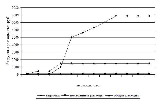 Исходя из анализа графика безубыточности, можно сказать, что предприятие ООО «Амур» очень быстро получает прибыль, уже на пятом месяце функционирования. И это означает, что на данном жизненном этапе развития склада прослеживается очень хорошая тенденция к дальнейшему росту его потенциалов, а это, прежде всего, влияет на перспективы развития предприятия-склада «Амур».