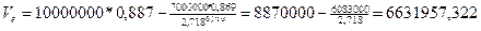 Стоимость компании без долговых обязательств равна 10млн. компания собирается эмитировать долговые обязательства номинальной стоимостью 7 млн. со сроком погашения через 10 лет. Стандартное отклонение доходности Компании равно 0,6324, безрисковая ставка – 10%