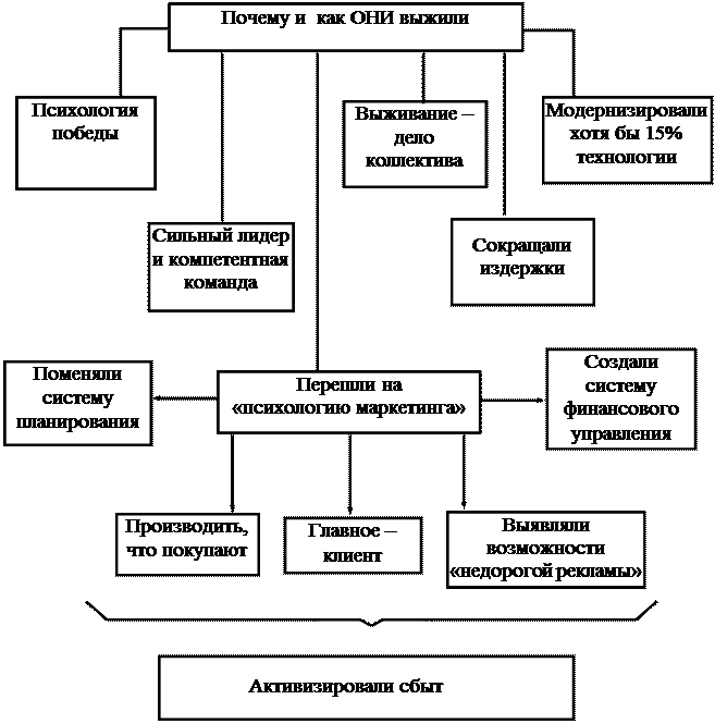 Научные исследования и консультационные работы авторов на некоторых Дальневосточных предприятиях в первые годы реформы показали, что попытки бессистемного использования разных управленческо-маркетинговых новаций не дают в практических достижениях эффективных результатов. Тогда еще только зарождавшаяся идея синтеза тактики и стратегии получила реальное обоснование в постулате системности. Стратегия как системный подход требует, чтобы системной была и тактика. И в первую очередь система «маркетинг-сбыт» должна быть «локомотивной» в рыночных преобразованиях. Этот практический результат согласуется с аналогичным выводом теоретического анализа, а от нее должна расходиться система преобразований общего менеджмента, кадровой службы, планирования и других направлений. Известная условность постановки имеет место: процессами развития и преобразований внутри предприятия являются сложно переплетающиеся эволюционные «цепочки». Лидирующая роль системы «маркетинг-сбыт» не может, наверно, быть подвергнута сомнению. А «инструментальная» часть сбалансированности в этой системе относится к вопросу методического исследования и структуризации.