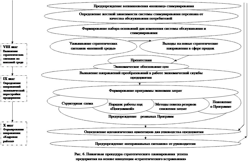 В колонке «маркетинг и сбыт» явно нет стратегических элементов, но идеи и методы активного сбыта содержат в себе «исходные точки стратегичности». Наконец, колонка «персонала» имеет отчетливые стратегические ориентиры, так как уверенность работников в будущем компании может быть реальной на «стратегической» основе.
