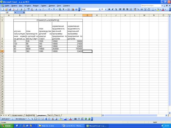 1.3. Цель решения задачи: рассчитать нормативную трудоемкость квартальной и месячной программ предприятия по деталям.
