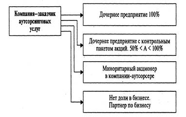 · отказ от собственного бизнес-процесса и приобретение услуг по реализации этого бизнес-процесса у другой организации;