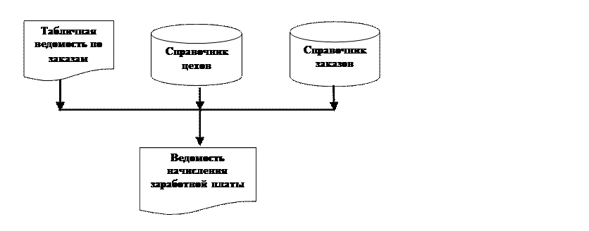В качестве входной информации используются справочники цехов и заказов. На основании справочников создается табельная ведомость по заказам. См. таб. 1