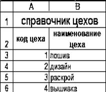 - справочник цехов, который используется для расшифровки кодов цехов;