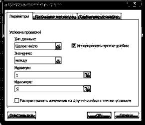 Ø выбираем закладку Сообщение об ошибке, (если установлен флажок вводить сообщение об ошибке, при попытке ввода в ячейку недопустимых значений выдается сообщение об ошибке или запрещается ввод неверных данных).