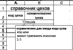 2. Организуем контроль вводимых данных в колонку Код цеха: