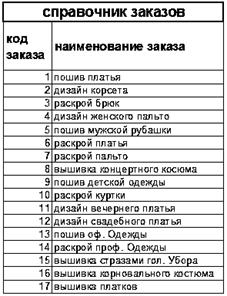 - справочник заказов, который используется для расшифровки кодов заказов.