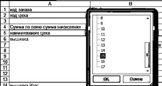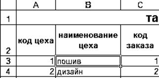 8. Организуем заполнения граф наименование цеха и наименование заказа в соответствии с кодом цеха и кодом заказа: