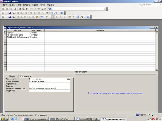 · нажмем «Открыть» в меню диалогового окна: появляется форма таблицы «Справочник цехов» (рис. 4).