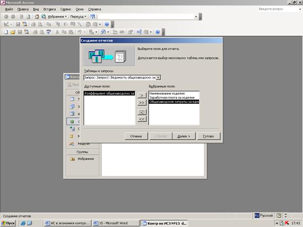 Рис. 14. Диалоговое окно «Создание отчетов» с выбранными полями