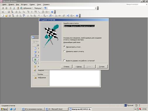 · нажмем кнопку «Далее»: появляется диалоговое окно «Создание отчетов» для присвоения имени отчета;