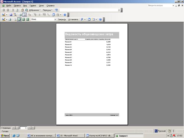 · подтвердим с использованием контекстного меню в окне «Таблицы и запросы» выбранный ранее запрос «Ведомость общезаводских затрат»;