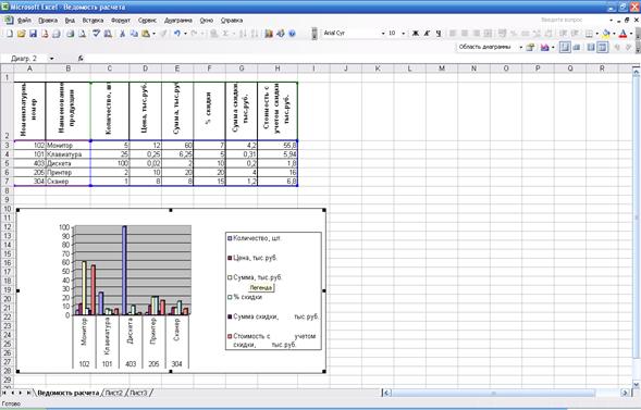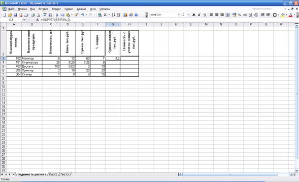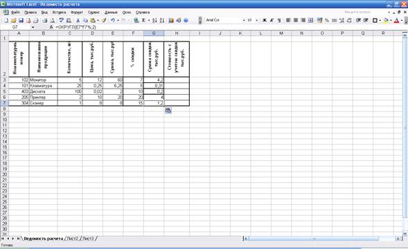 3. Сформировать и заполнить ведомость расчета стоимости продукции с учетом скидки.
